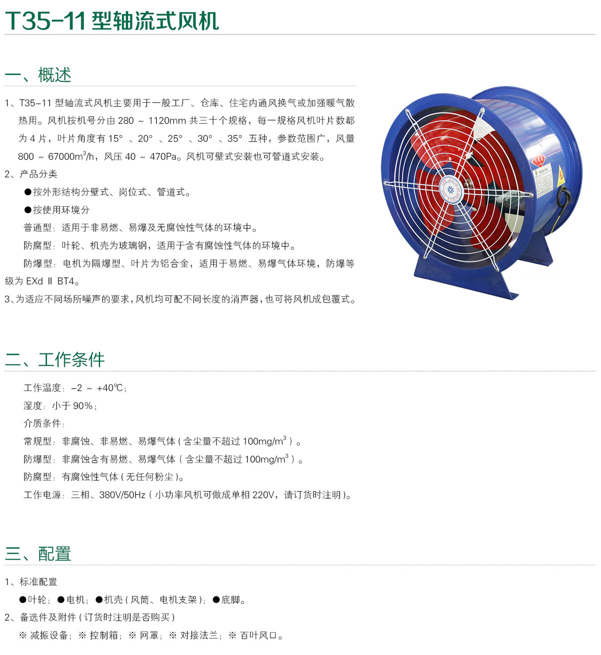 T35-11系列轴流风机是在T30-11的基础上改进设计的新型风机,主要优点是结构更合理,性能有了较大提高。
