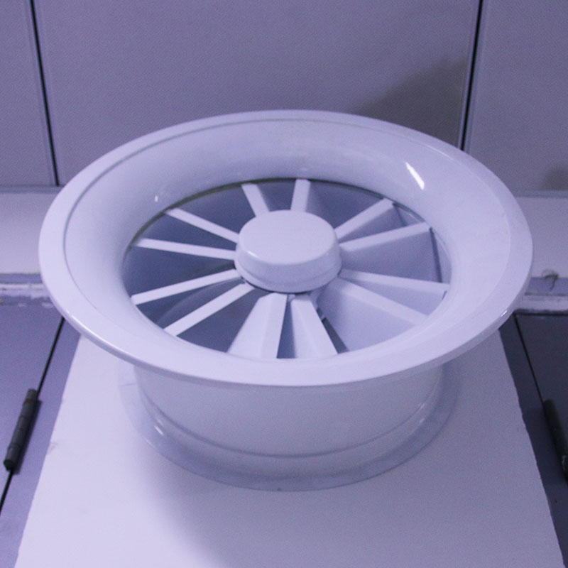 旋流风口是空调系统中的一个送风工具。在空调通风系统中可用作大风量,大温差送风以减少风口数量,安装在天花板或顶棚上,可用于3米以内低空间,也可用二种高度大面积送风。