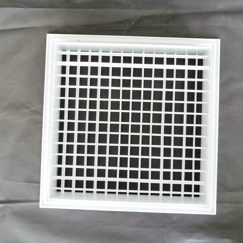 双层百叶风口,广泛应用于空调系统中作送风口,根据使用要求,风口后面可配制铝制风量调节阀(人字闸),双层百叶风口具有两层相互垂直页片调节水平和垂直页片的角度。
